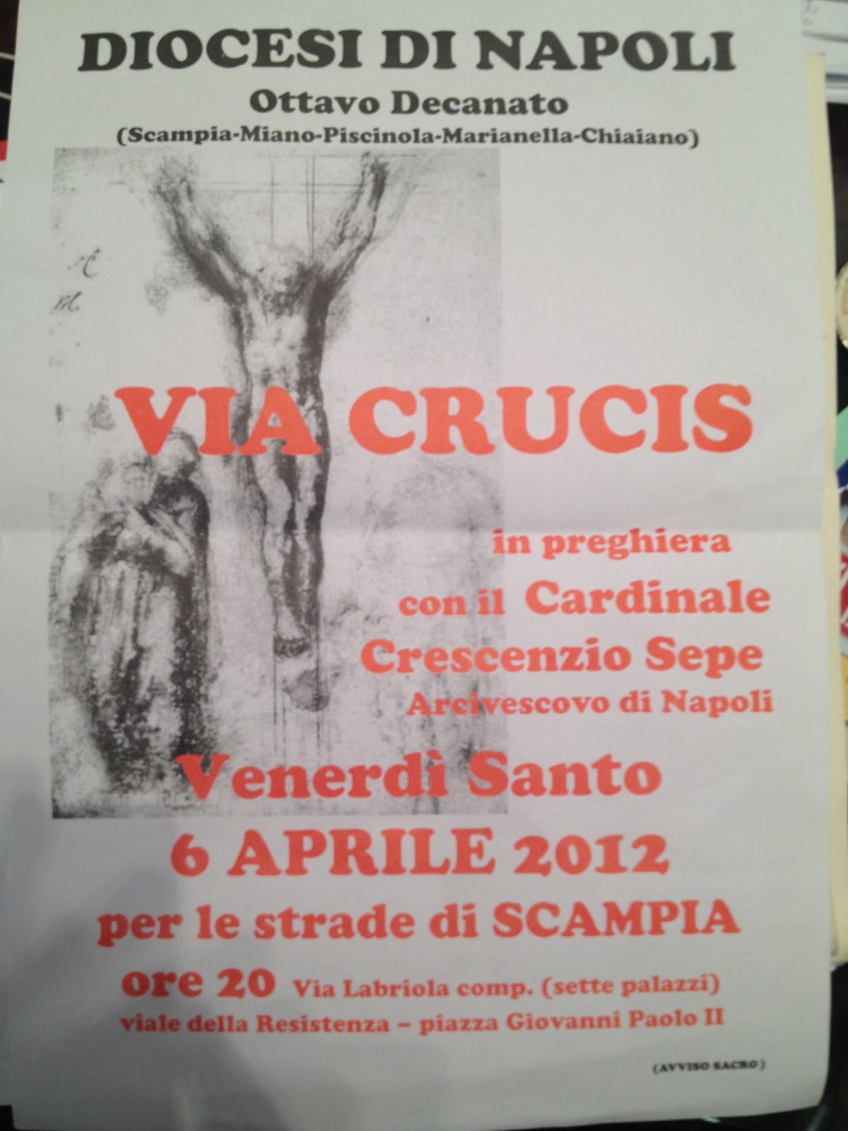“La Via Crucis è un evento molto importante per Scampia e per tutti i residenti del territorio dell’ Ottava Municipalità – ha affermato il presidente Pisani -. Oltre ad augurare una buona Pasqua lanceremo insieme ai cittadini un messaggio di solidarietà, di legalità e di speranza a tutta la città. E’ importante che gli abitanti della zona a Nord di Napoli sentano più che mai la vicinanza delle istituzioni e condividano valori importanti come la fede e l‘aggregazione, soprattutto i più giovani che troppo spesso rischiano di perdere la retta via”.